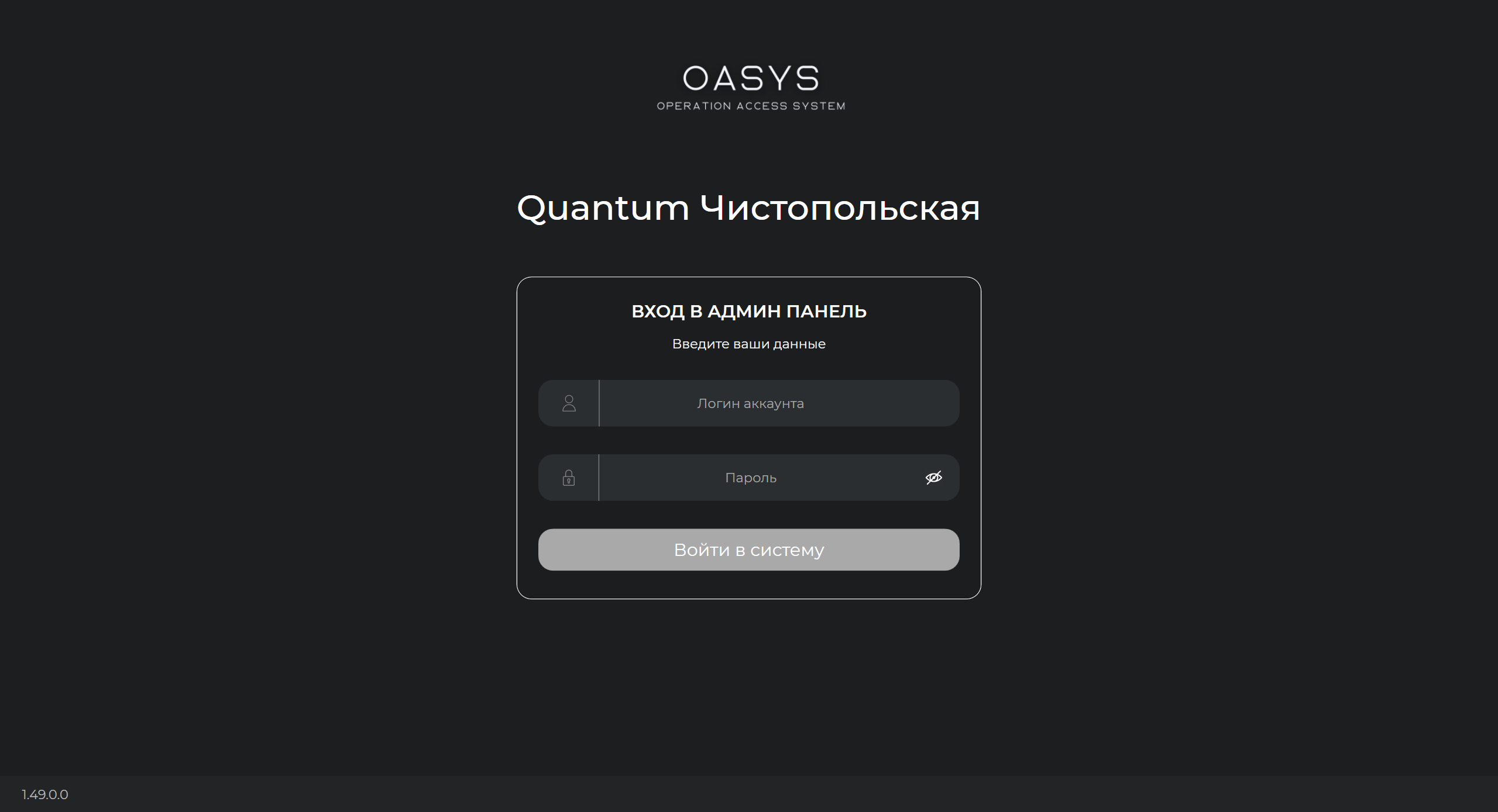 Войти в админ панель можно после установки приложения OASys.Admin.exe, которое придет вам на почту после регистрации. Для входа используйте логин и пароль от аккаунта admin, которые также придут Вам на почту после регистрации